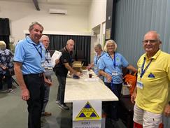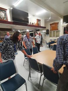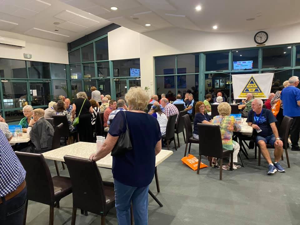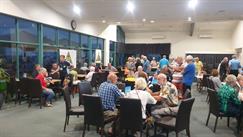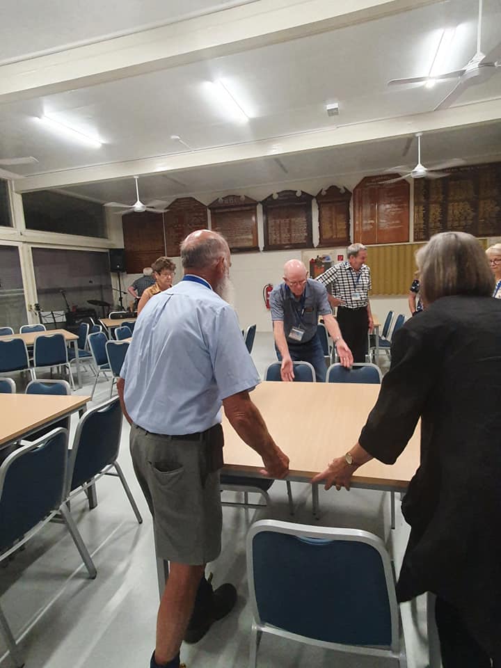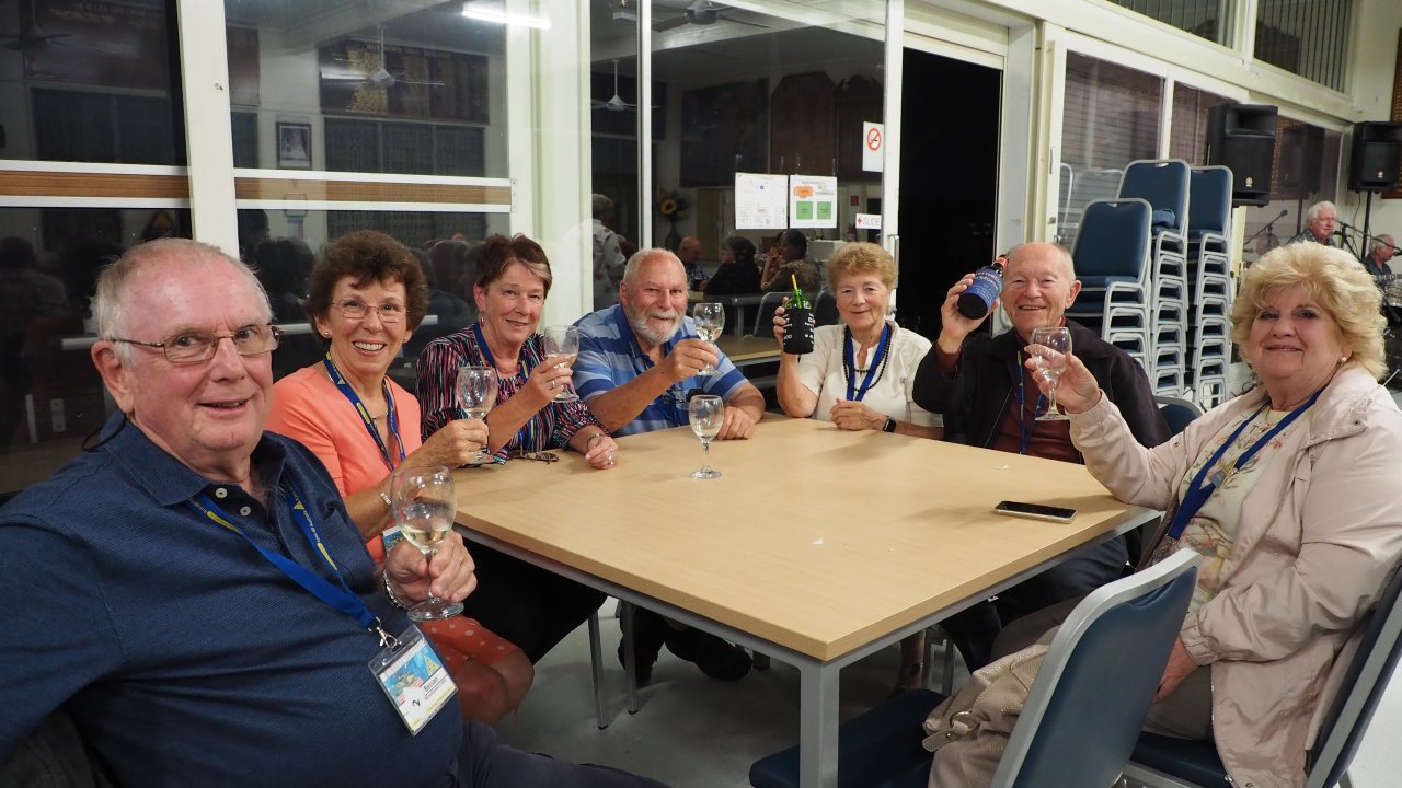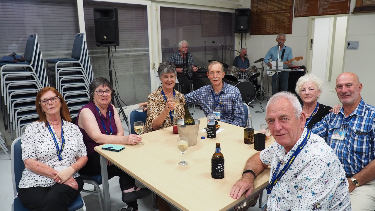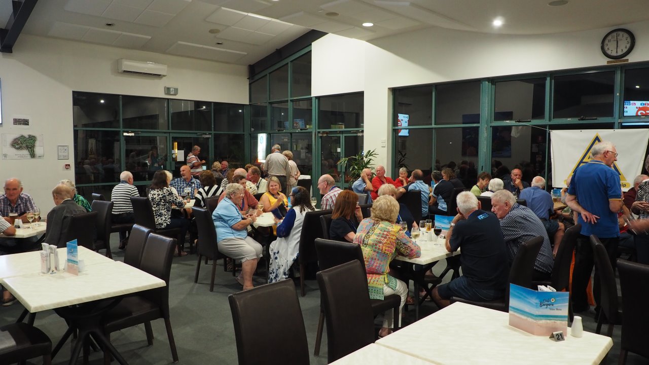 This evening we went to Bundaberg Bowling Club where the volunteers maned the bar whilst Elegant Catering provided us a BBQ dinner and we had music provided by a local senior aged band. At the end of the night we had to put tables and chairs back to the normal setup.